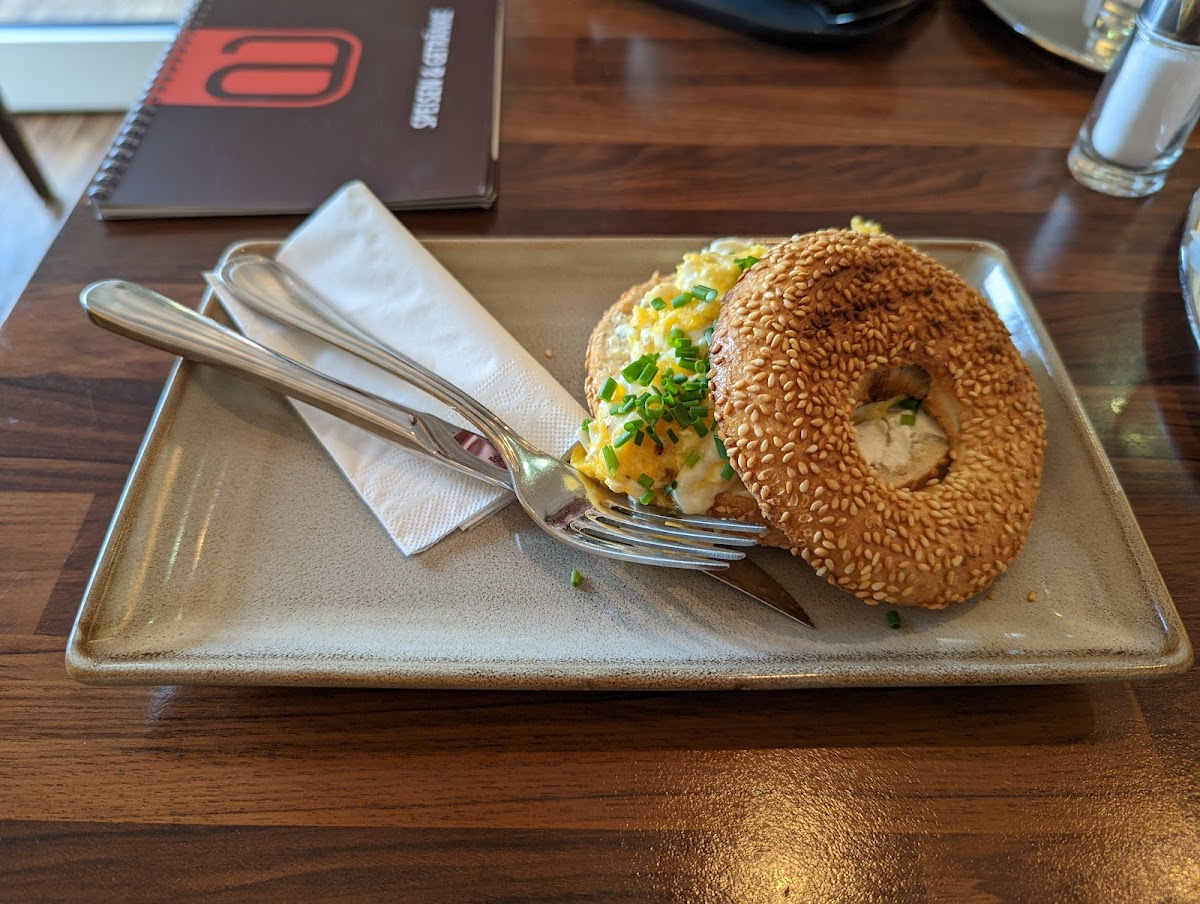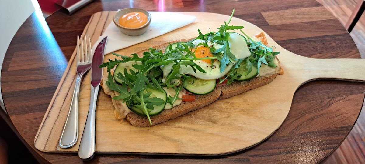 Sehr angenehm dort und gemütlich. Auf der großen und kleinen Terrasse kann man gemütlich sitzen. Das Brot mit Schinkenspeck und Ei ist mein Liebling :-)